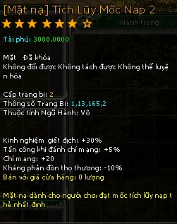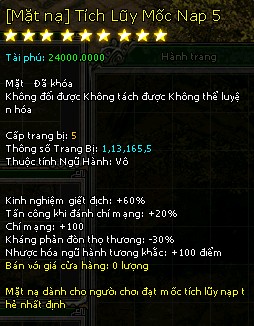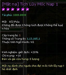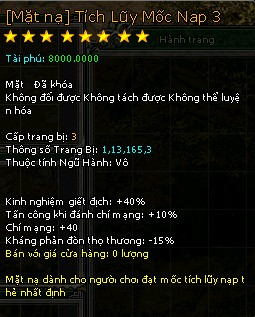 Đặc quyền mua Phi Phong tại NPC Tiên Trang (giá 0 Ngũ Hành Hồn Thạch, không hạn dùng, mọi loại phi phong) Mặt nạ tích luỹ mốc nạp 3