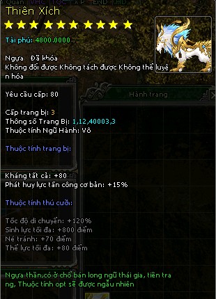 150 Danh Bổ Lệnh 5 Túi Vỏ Sò Vàng 10 2 Tu Luyện Đơn 1 Huyền Tinh 7 1 Vạn Vật Quy Nguyên Đơn 5 Ngọc Như Ý 1 Thỏi Vàng(tiểu) 1 Rương Nguyệt Ảnh Thạch 1 Lệnh Bài Hắc Thiết 100 Tiền Du Long |